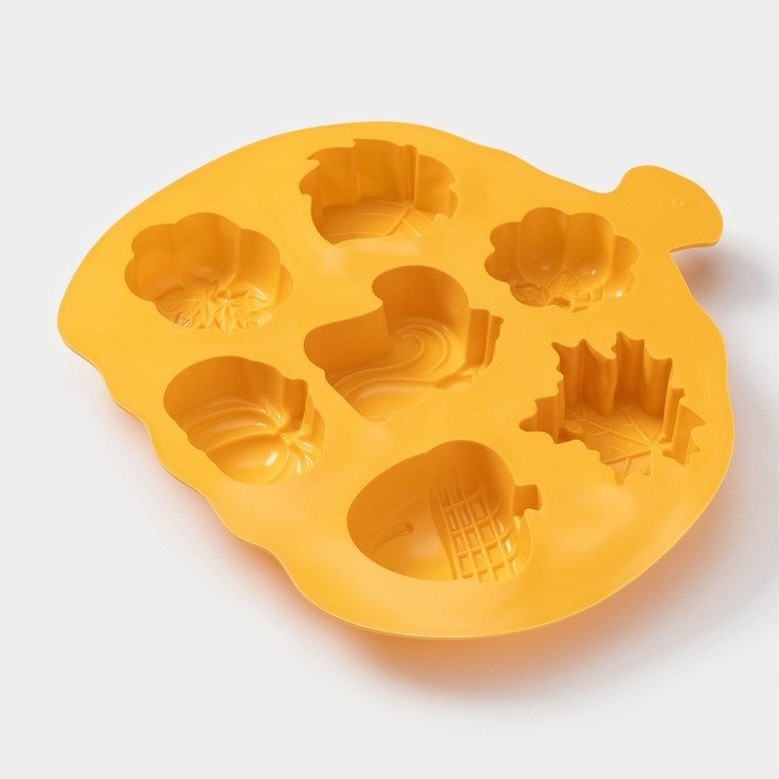 Форма для выпечки Доляна «Осенняя пора», силикон, 7 ячеек, 26×25,5×3 см, цвет оранжевый