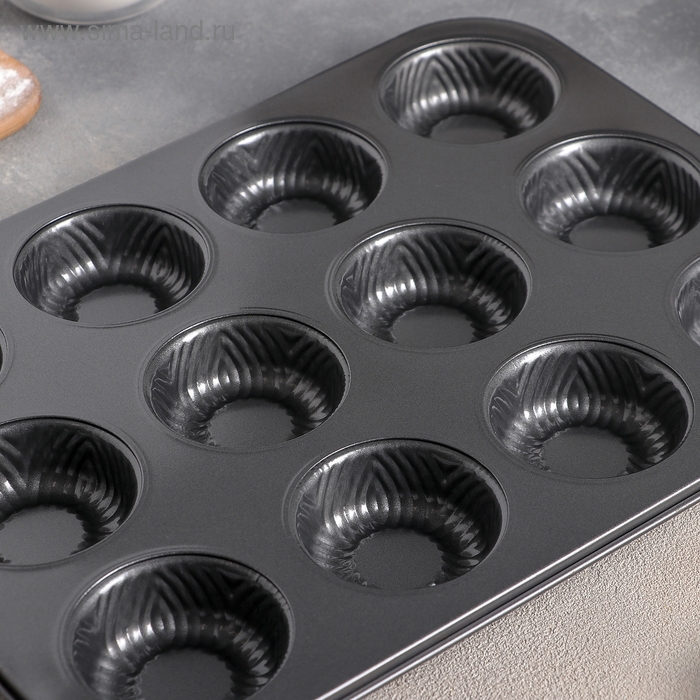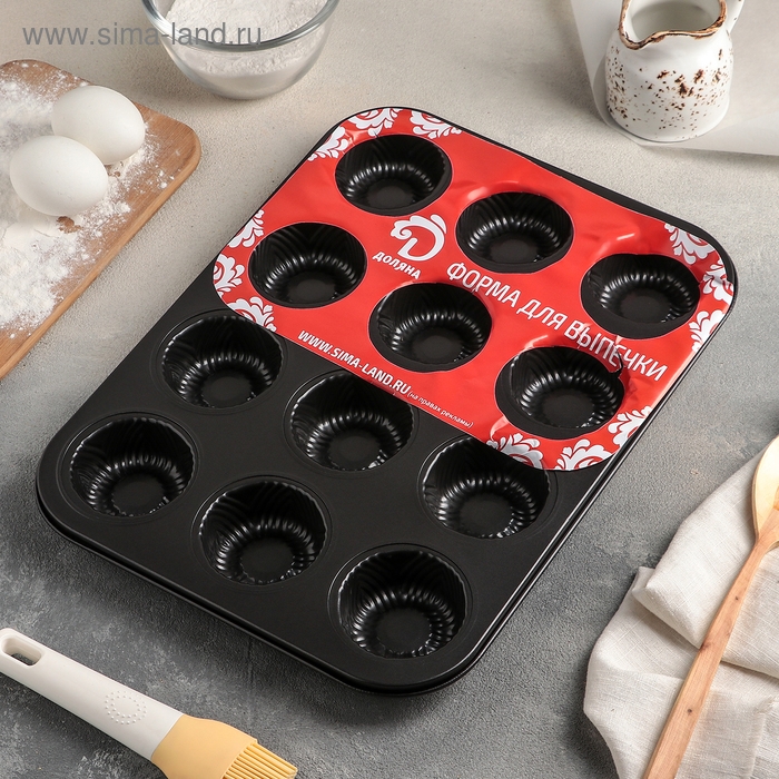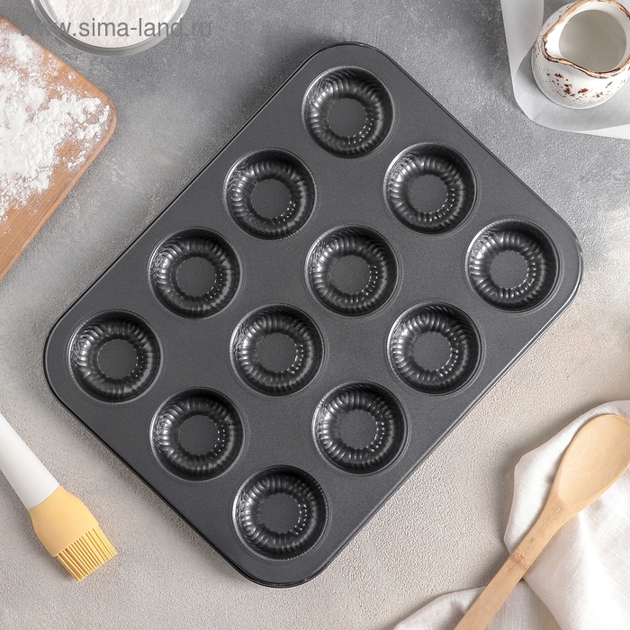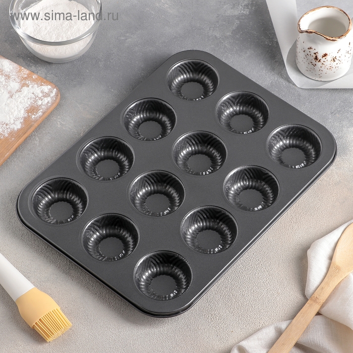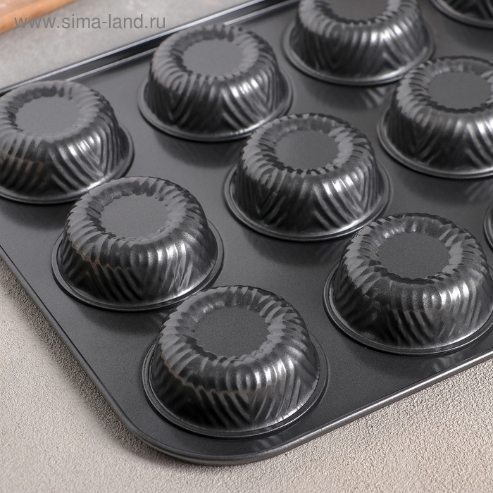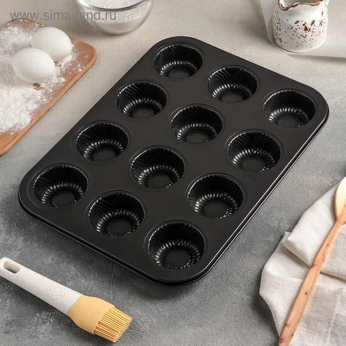 Форма для выпечки Доляна «Пудинг», 35×27×3 см, 12 ячеек, антипригарное покрытие, цвет чёрный