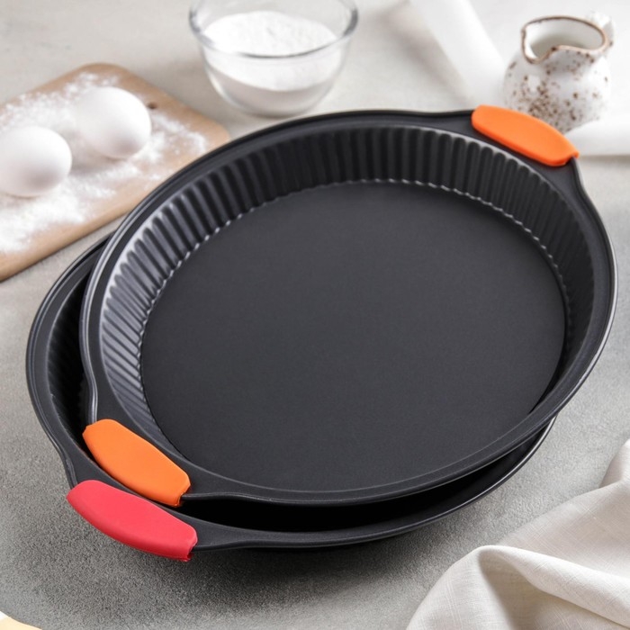 Набор форм для выпечки Доляна «Элин. Круг», 3 предмета: d=24/26/28 см, съёмное дно, антипригарное покрытие, цвет чёрный