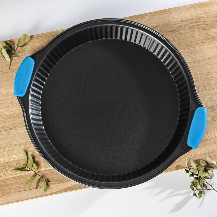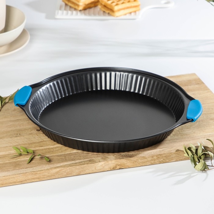 Форма для выпечки Доляна «Рифлёный круг. Забота», 30,5×4 см, с силиконовыми ручками, антипригарное покрытие, цвет чёрный
