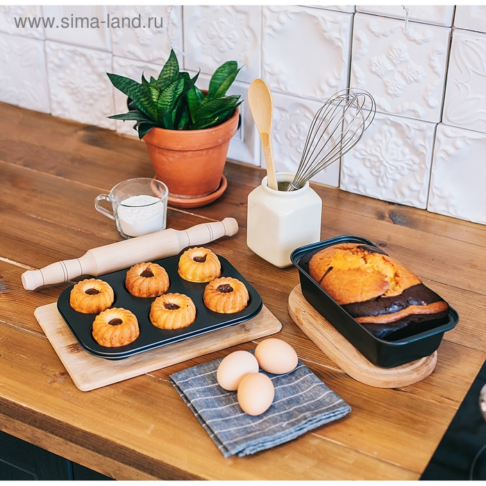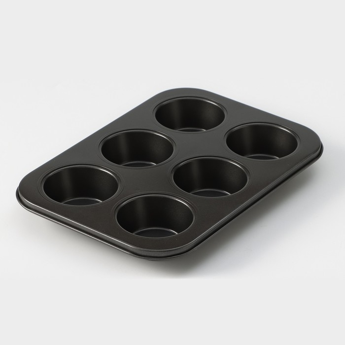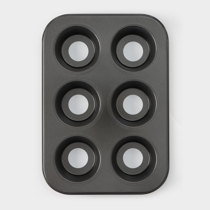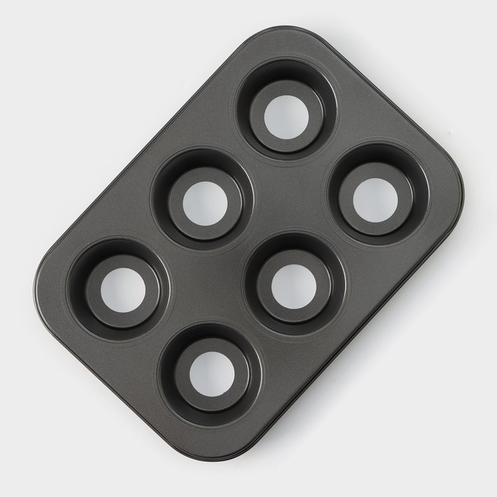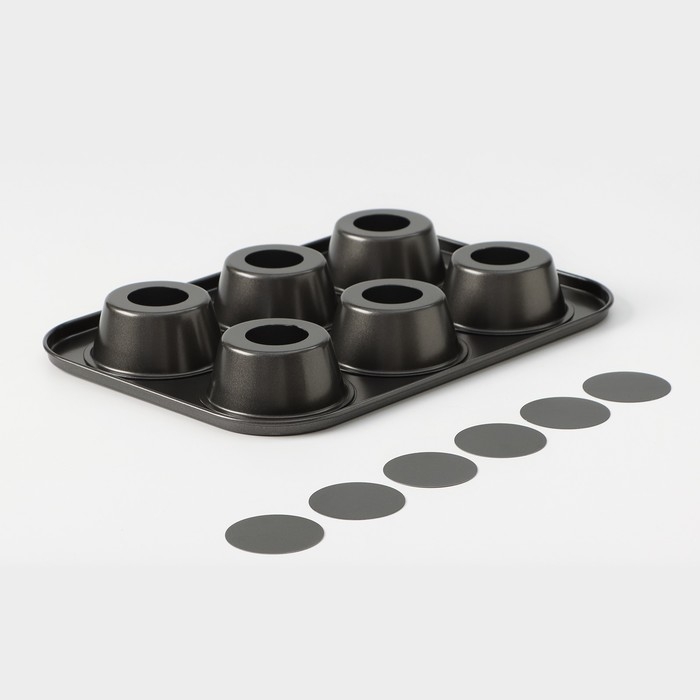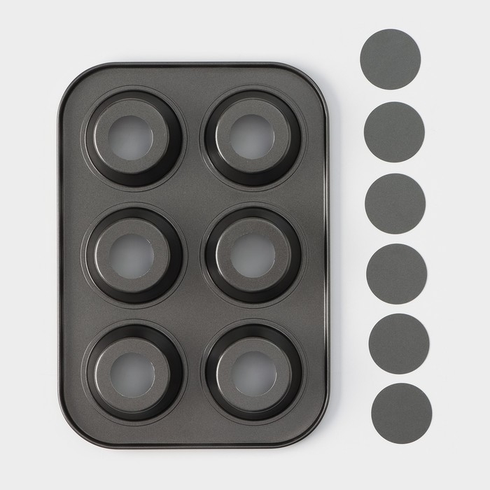 Форма для выпечки Доляна «Жаклин. Круг», 26×18×3 см, 6 ячеек, съёмное дно, антипригарное покрытие, цвет чёрный