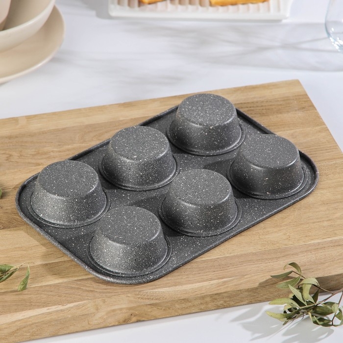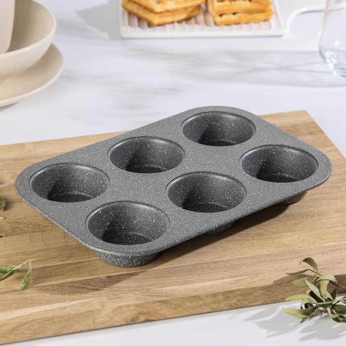 Форма для выпечки «Элин Мрамор. Кекс», 27,5×18×3 см, 6 ячеек, антипригарное покрытие, цвет серый