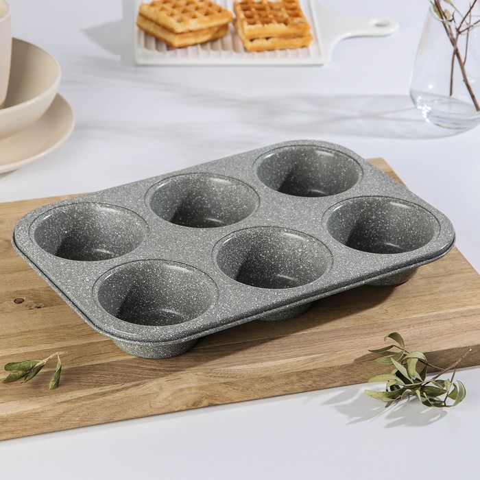 Форма для выпечки «Элин Мрамор. Кекс», 31,5×21,5×3,7 см, 6 ячеек, антипригарное покрытие, цвет серый