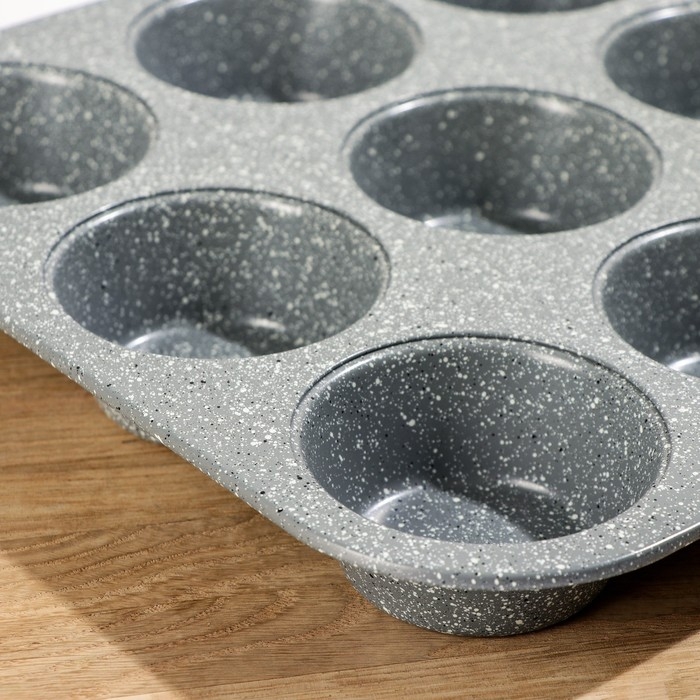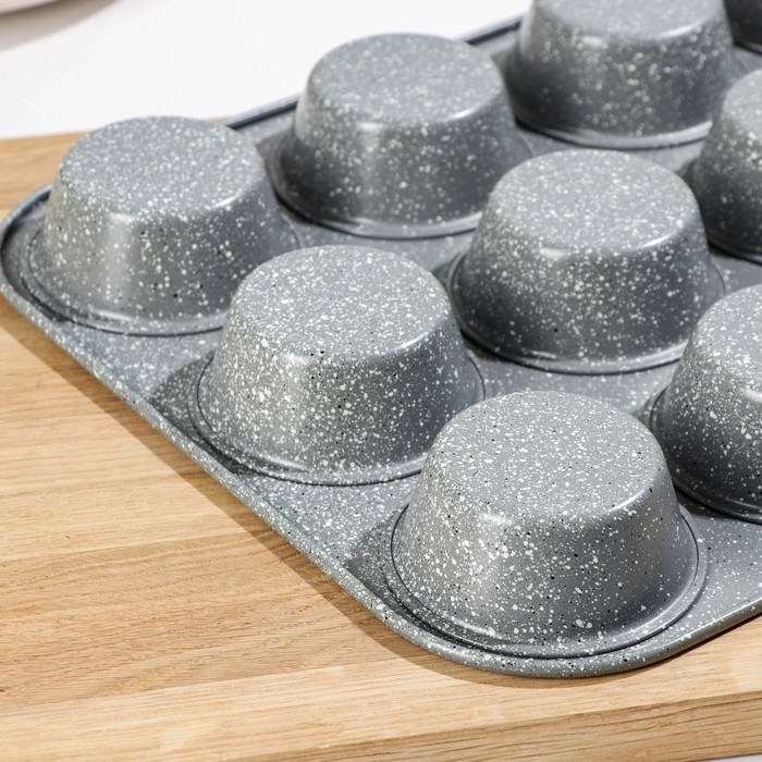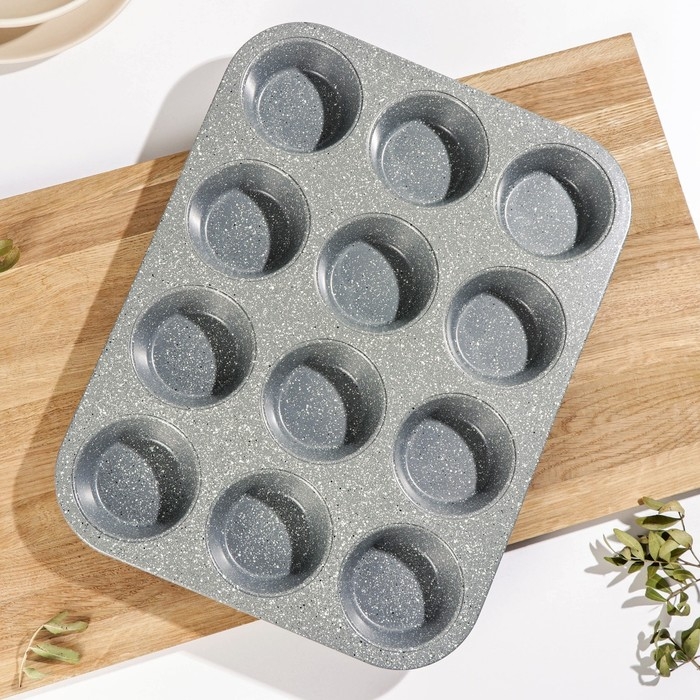 Форма для выпечки «Элин Мрамор. Кекс», 35×26,5×3 см, 12 ячеек, антипригарное покрытие, цвет серый