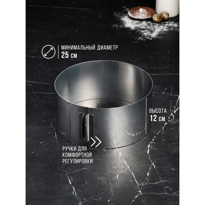 Форма для выпечки и выкладки с регулировкой размера «Круг», h-12 см, d-25-50 см