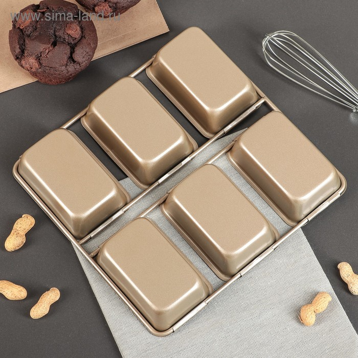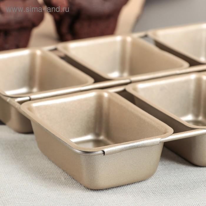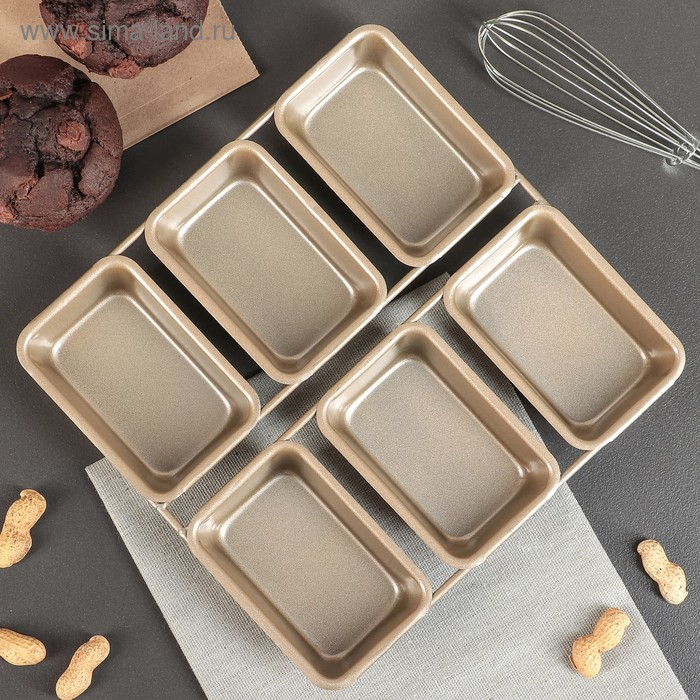 Форма для выпечки «Прямоугольник. Рэнди», 21,5×21 см, 6 ячеек, антипригарное покрытие, цвет золотой