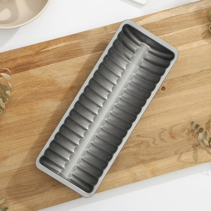 Форма для выпечки «Рифлёный прямоугольник», 12×6,5 см, съёмное дно, антипригарное покрытие, цвет чёрный