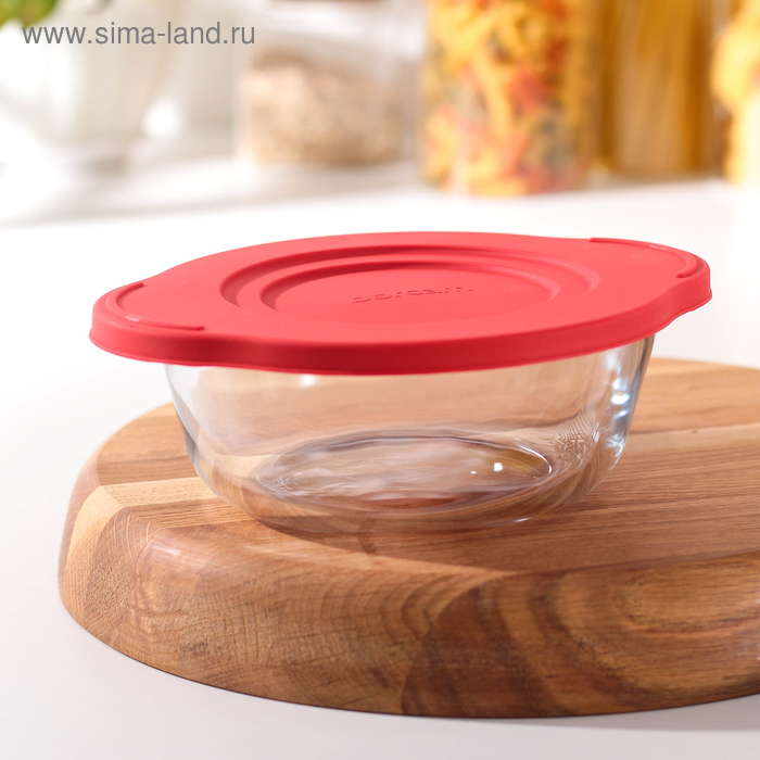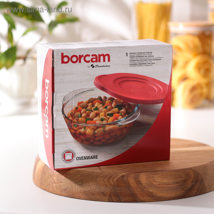 Форма из жаропрочного стекла для запекания Borcam, 840 мл, с красной пластиковой крышкой