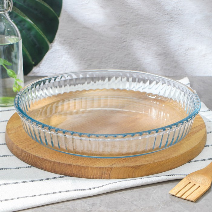 Форма круглая для запекания и выпечки из жаропрочного стекла Borcam, 2,6 л, рифлёная