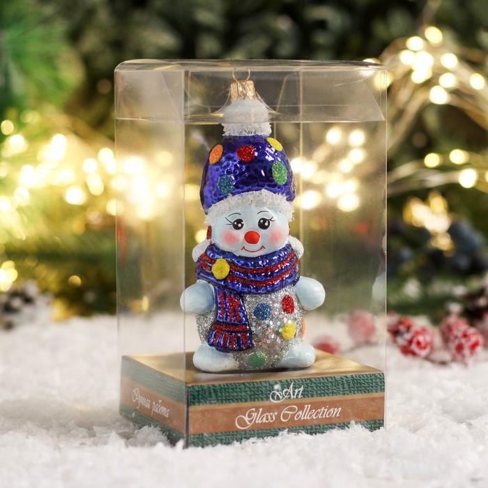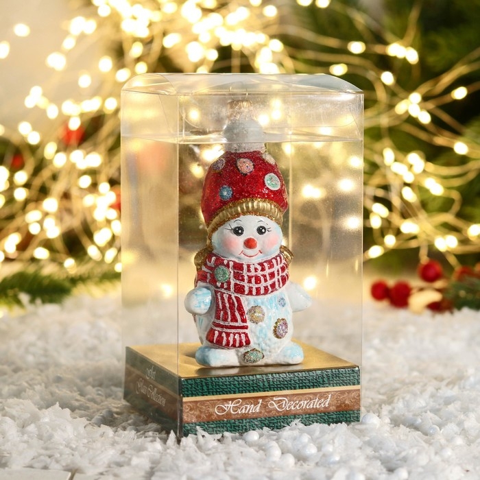 Формовая игрушка "Снеговик в мохеровой шапочке" 12,5 см