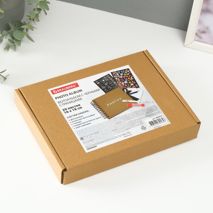 Фотоальбом BRAUBERG Black&Kraft, размер 16х18 см, 20 черных листов