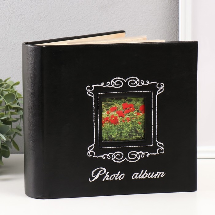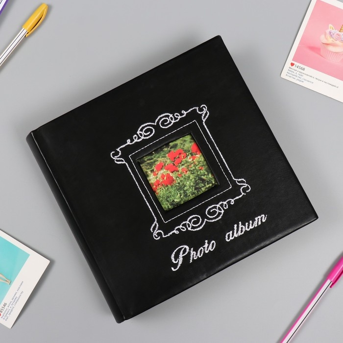 Фотоальбом кожзам на 200 фото 10х15 "Вышитая рама" черный 22х23х5 см