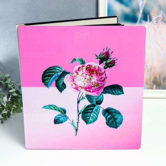 Фотоальбом магнитный 20 листов "Роза с шипами" в коробке, дерево, стразы 34х4х33 см
