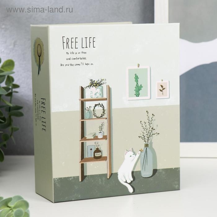 Фотоальбом на 100 фото 10х15 см "Белый кот и этажерка" 18х14х5 см