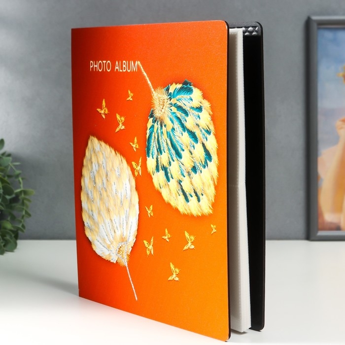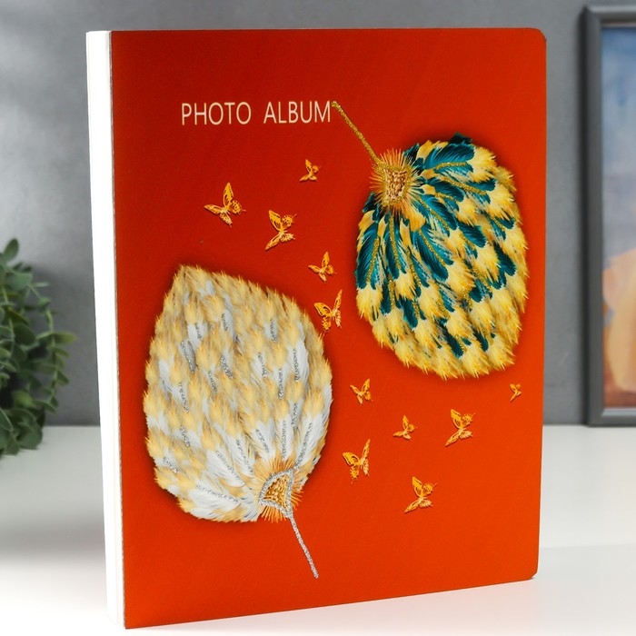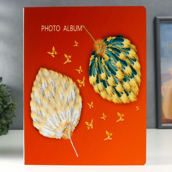 Фотоальбом на 100 фото 13х18 см "Опахало из перьев и бабочки" в коробке, дерево 29,5х4х23 см 75755