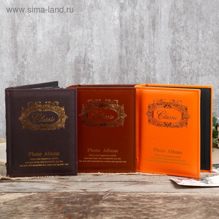 Фотоальбом на 200 фото 10х15 см "Классический" кожзам чёрные листы МИКС 23х18,5х5 см