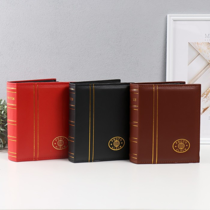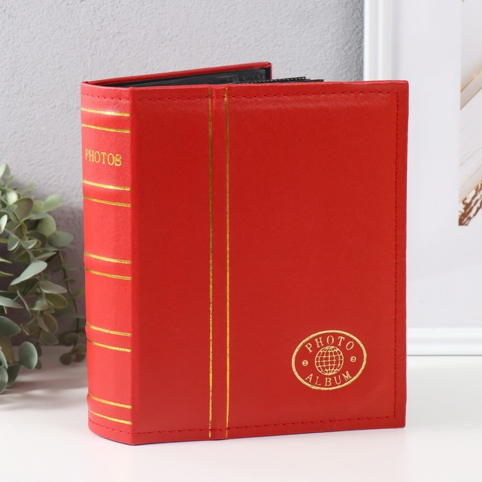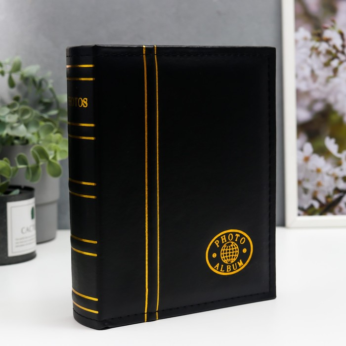 Фотоальбом на 200 фото 10х15 см "Классика" 2 золотых полоски МИКС кожзам 18х23х5,5 см
