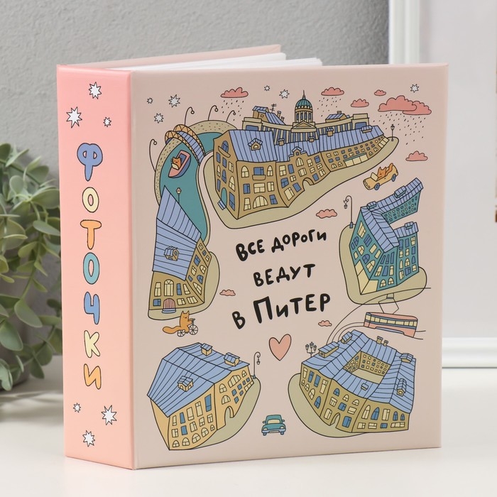 Фотоальбом на 200 фото 10х15 см, пластик. листы "SPb city art: pink"