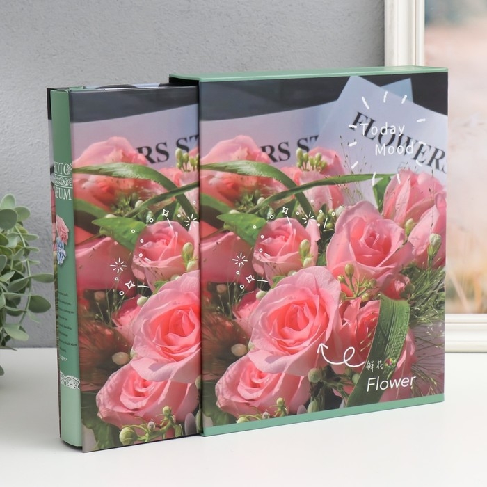 Фотоальбом на 200 фото 10х15 см "Розовые розы" в коробке 25,8х21х5 см