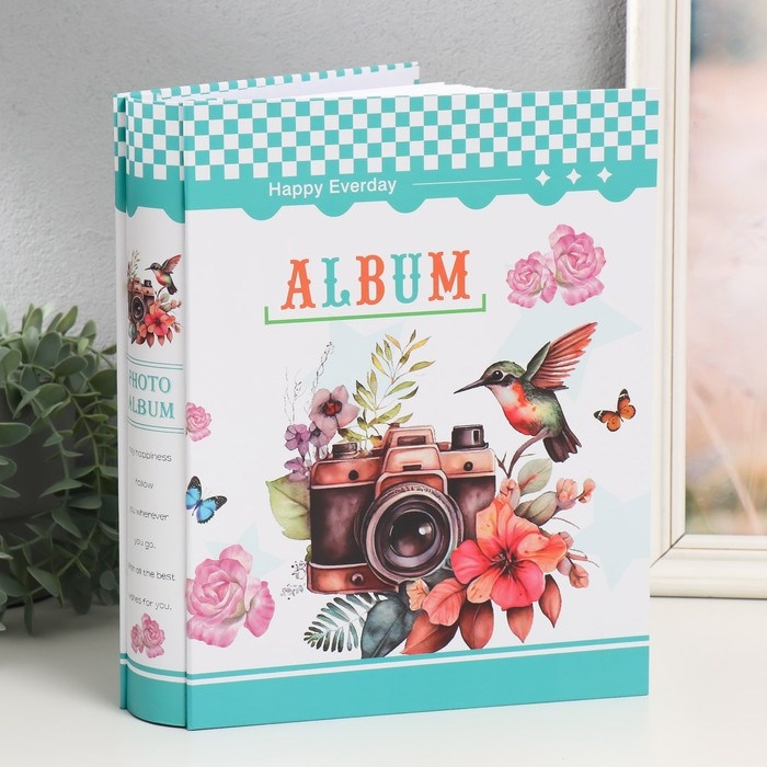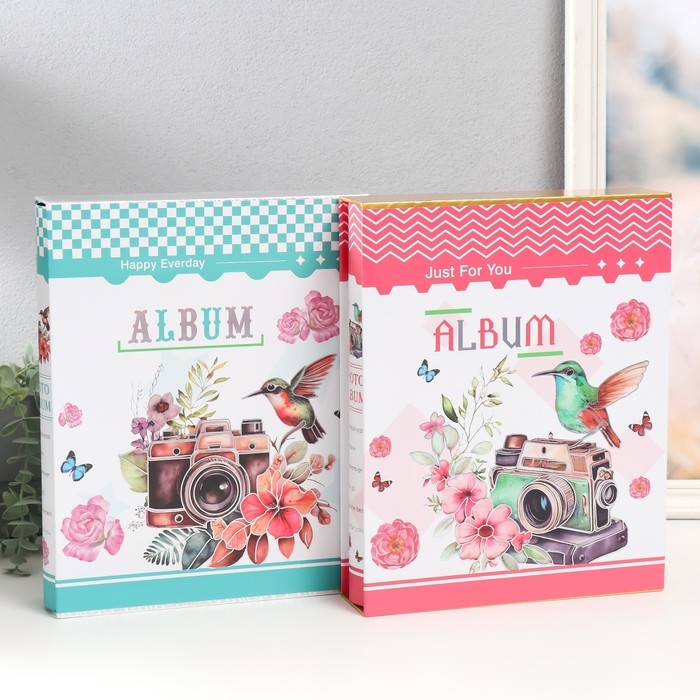 Фотоальбом на 200 фото 13х18 см "Камера и колибри" серебро, в коробке МИКС 5,8х23,7х29,8 см 993470
