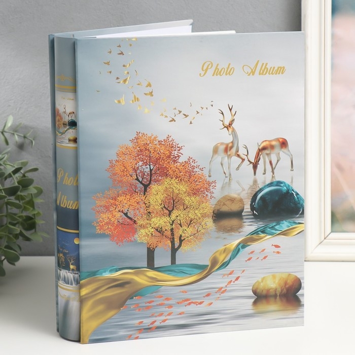 Фотоальбом на 200 фото 13х18 см "Олень/олени у дерева" в коробке 29,5х23х5,5 см