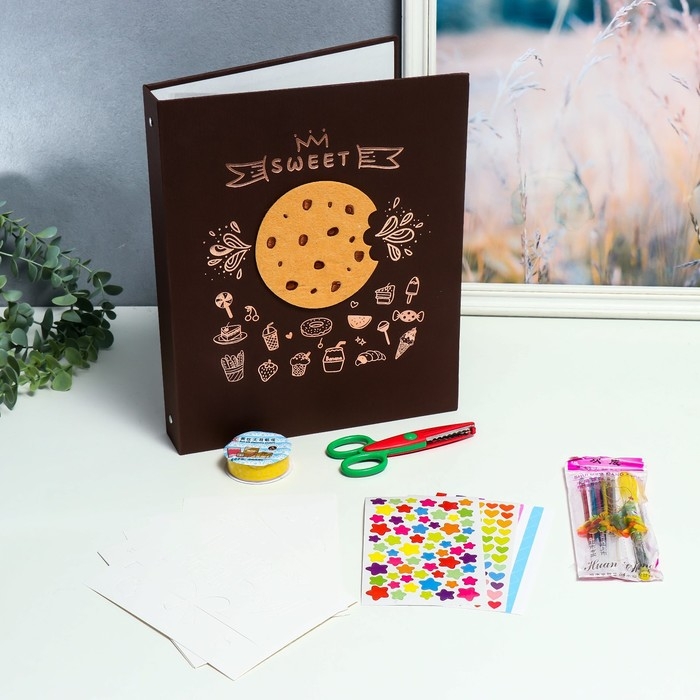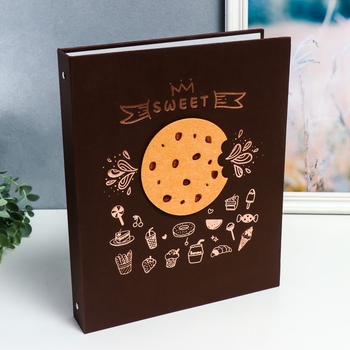 Фотоальбом на кольцах 30 листов+30 файлов "Сладости" чёрные листы 31,4х25,8х5 см