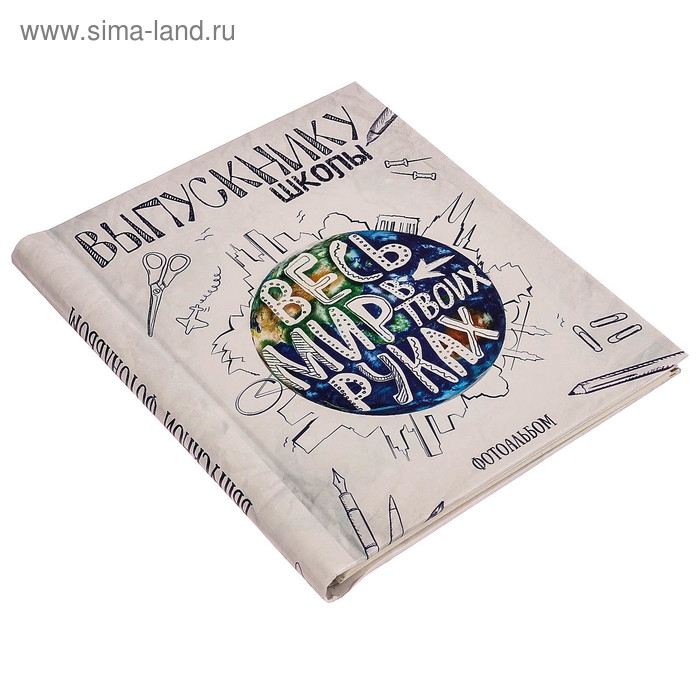Фотоальбом на выпускной «Выпускнику школы. Весь мир в твоих руках» 20 магнитных листов размером 20 х 28 см