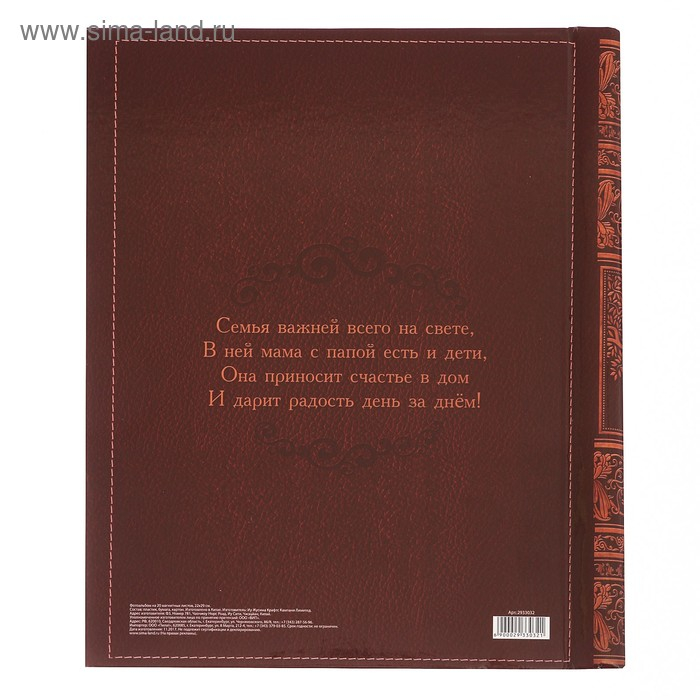 Фотоальбом "Семейная книга", 20 магнитных листов размером 20 х 28 см