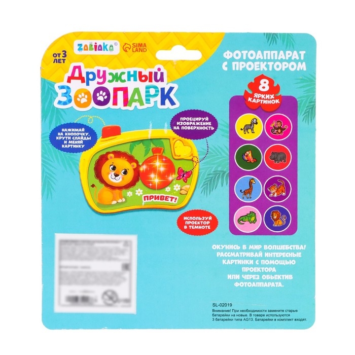 Фотоаппарат с проектором «Дружный зоопарк», 8 картинок, световые эффекты