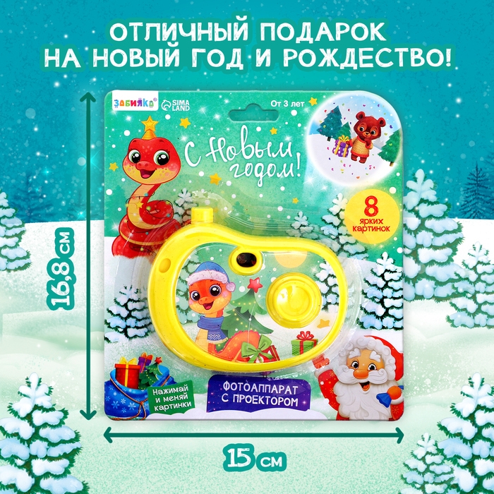 Фотоаппарат с проектором «С Новым годом», 8 картинок, световые эффекты, цвет жёлтый