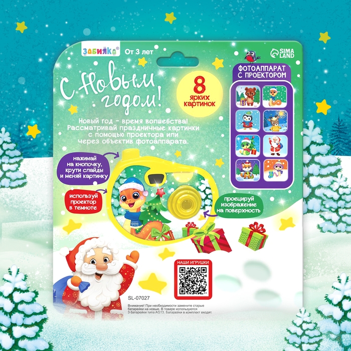 Фотоаппарат с проектором «С Новым годом» привлечёт внимание трогательным дизайном и поможет весело провести время в ожидании праздника.