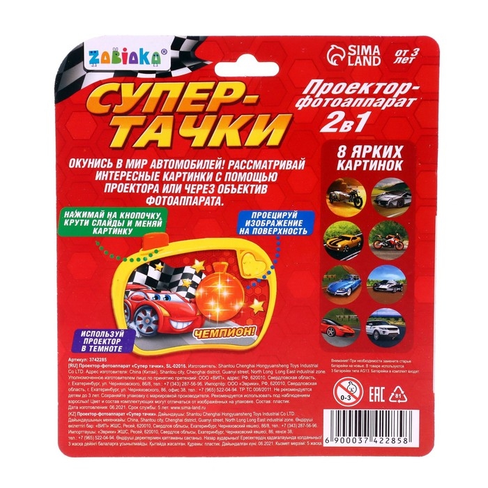 Фотоаппарат с проектором «Супер тачки» привлечёт внимание трогательным дизайном и надолго займёт малыша. Игрушка научит создавать изображения, поможет развить усидчивость, воображение и абстрактное мышление.