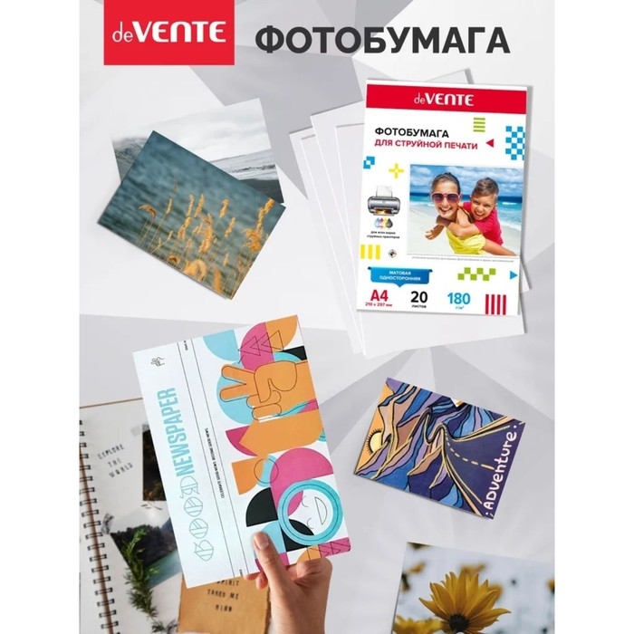 Фотобумага для струйной печати A4, 20 листов deVENTE, матовая, односторонняя, блок 180 г/м2