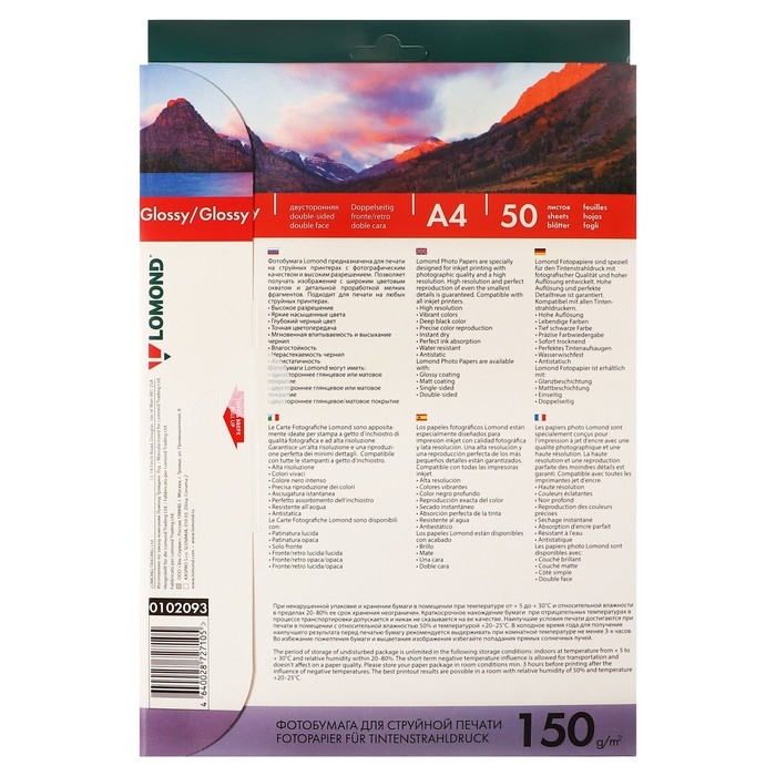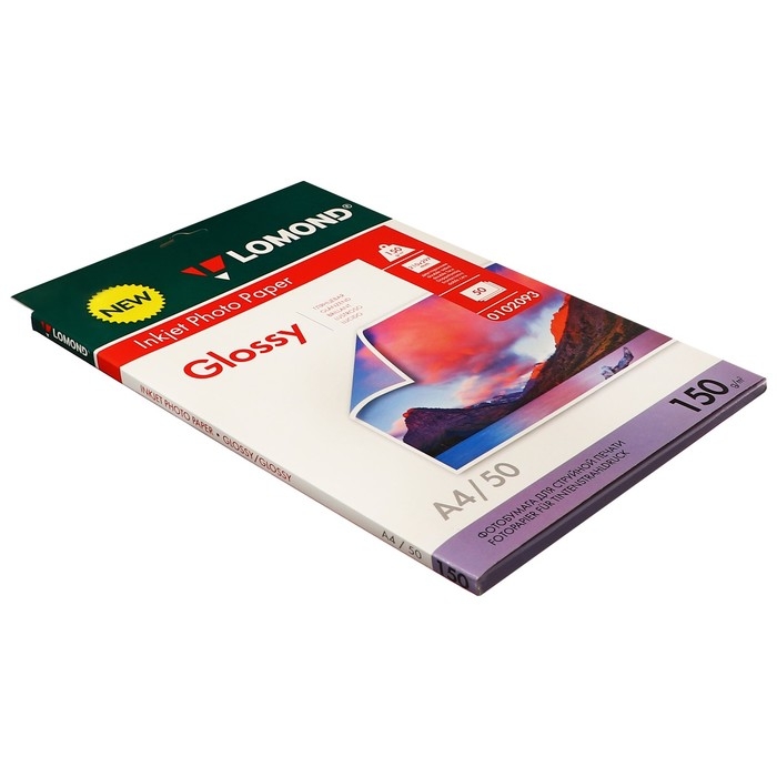 Фотобумага для струйной печати А4, 50 листов LOMOND, 150 г/м2, двусторонняя, глянцевая
