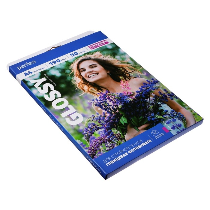 Фотобумага для струйной печати А4, 50 листов Perfeo, 190 г/м2, односторонняя, глянцевая