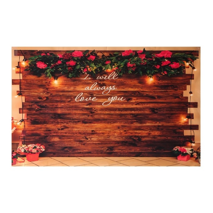 Фотофон винил "Пионы и фонарики на дощатая стене" 80х125 см