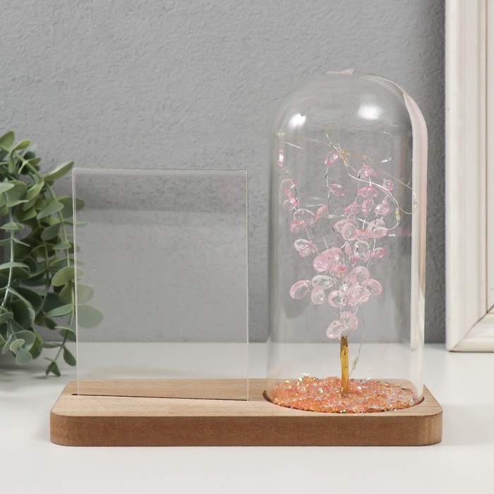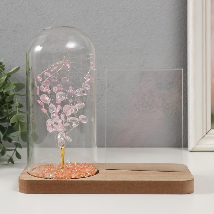 Фоторамка дерево 9х13 см с подсветкой "Розовое деревце" от батареек 2хLR1130 19х9х18,5 см