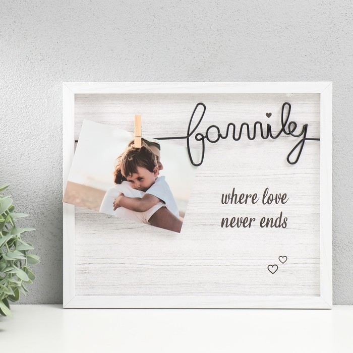 Фоторамка дерево, металл с прищепками 10х15 см "Семья" белая 28,5х24 см
