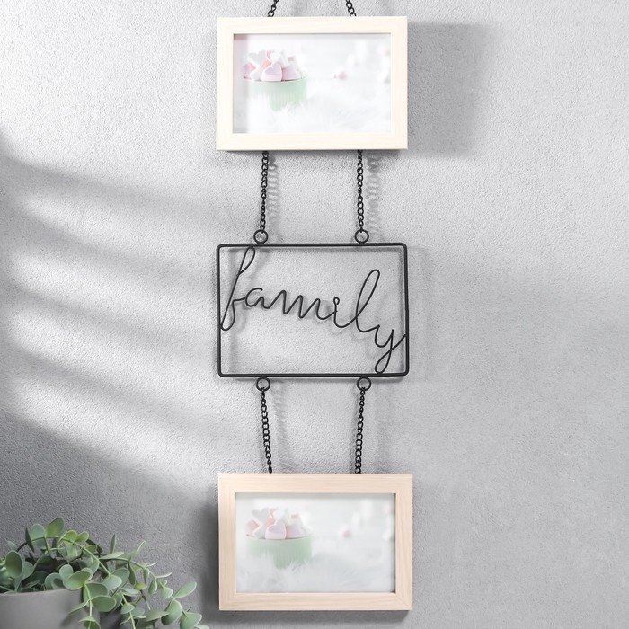 Фоторамка двойная МДФ подвесная на цепочке "FAMILY" 10х15 см