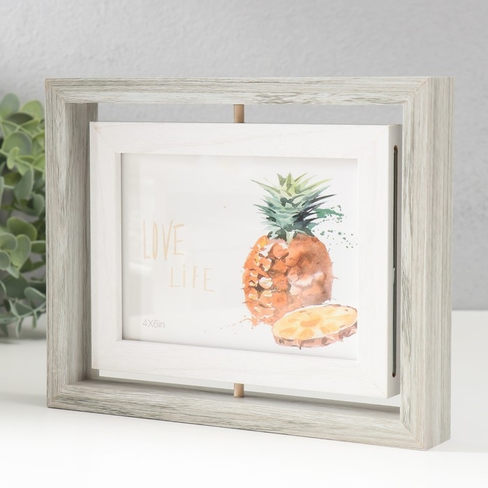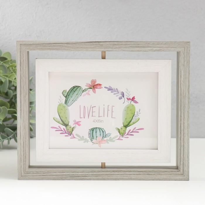 Фоторамка МДФ на 2 фото 10х15 см "Вертушка двусторонняя" серо-голубая 21,5х3х16,3 см