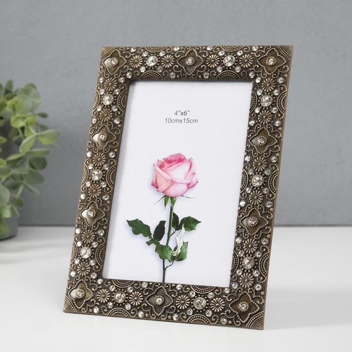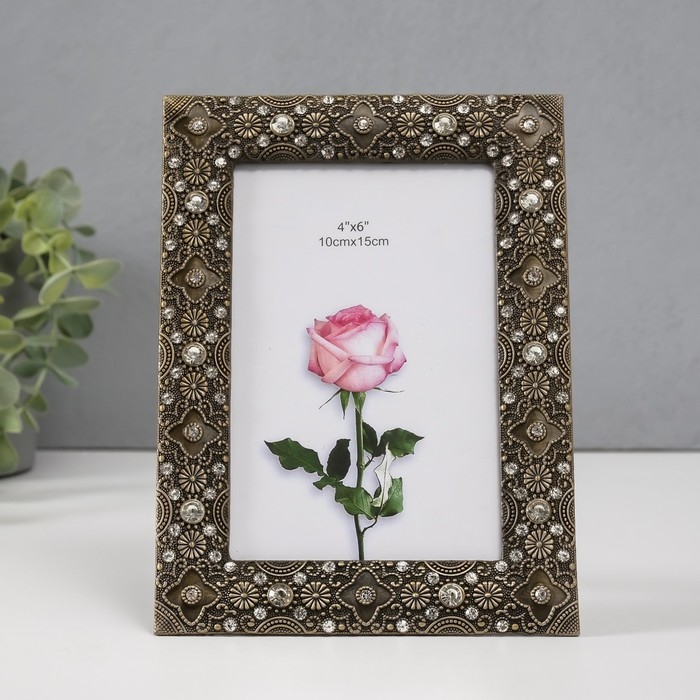 Фоторамка металл, стекло 10х15 см "Арктур" латунь стразы 1х14,2х19,2 см