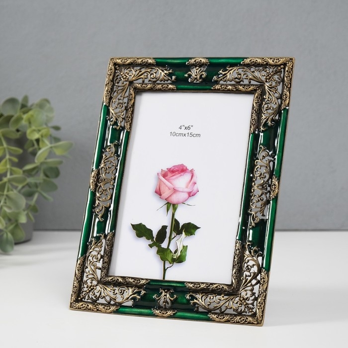 Фоторамка металл, стекло 10х15 см "Кипарис с узорами" эмаль 1,5х14,8х20 см