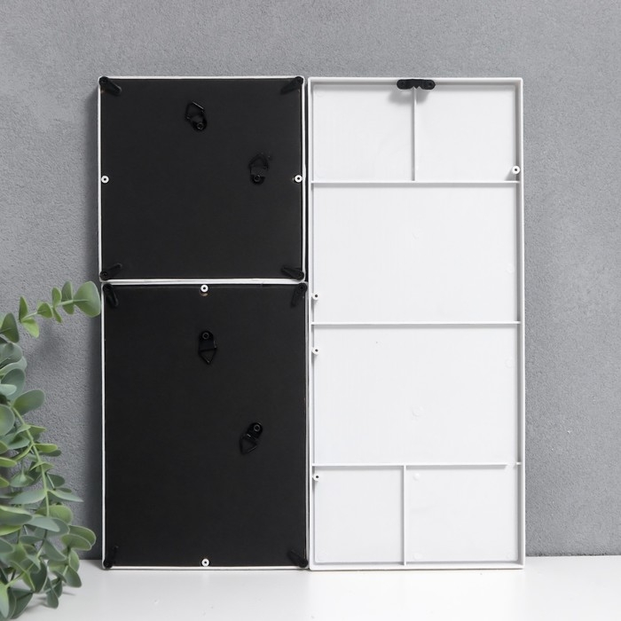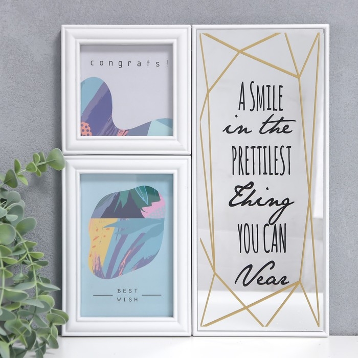 Фоторамка на 2 фото 10х10, 10х15 см+зеркало "Улыбка" белая набор 3 шт 31х27 см