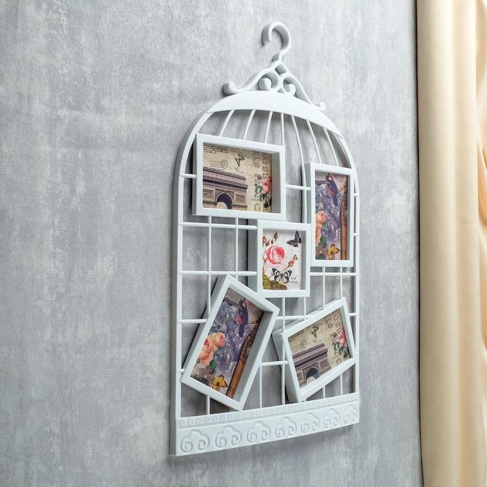 Фоторамка на 5 фото 10х10 см, 10х15 см "Клетка" белая 64х38 см