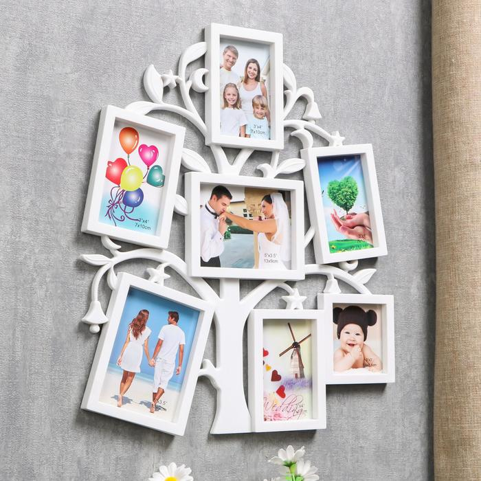 Фоторамка на 7 фото 7х7 см, 7х10 см, 13х9 см "Дерево желаний" белая 36х31 см