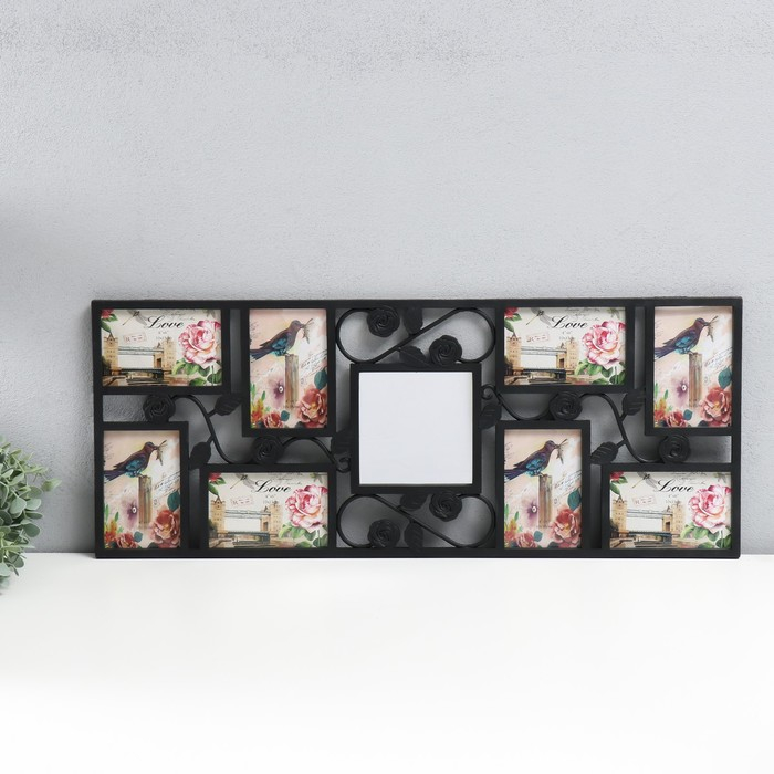 Фоторамка на 8 фото 10х15 см "Розы" чёрная 65,5х31 см