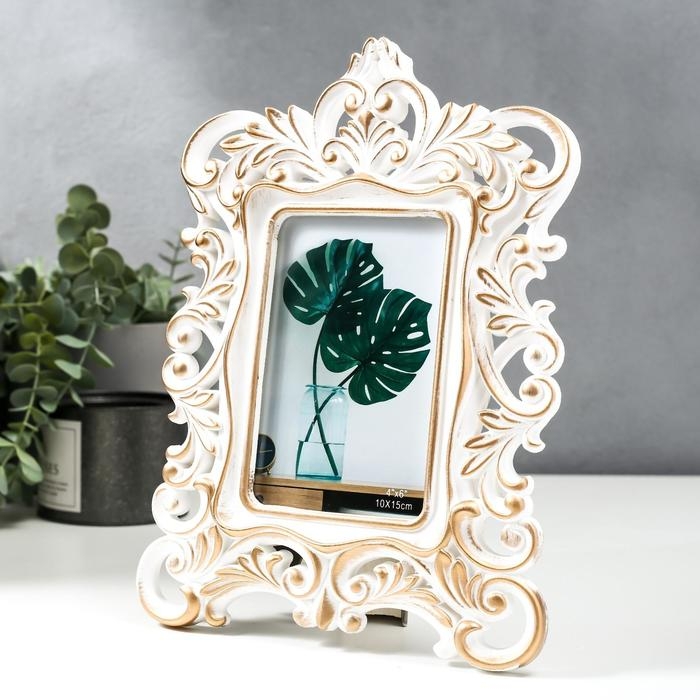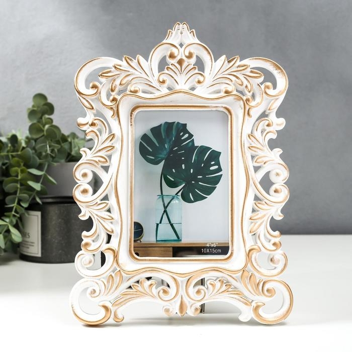 Фоторамка пластик 10х15 см "Королевские пышные листья" золото 28х20,5 см