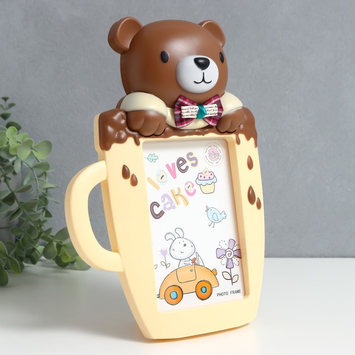 Фоторамка пластик 10х15 см "Мишка в чашке" бежево-коричневая 6х20х28 см
