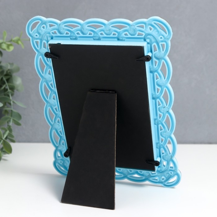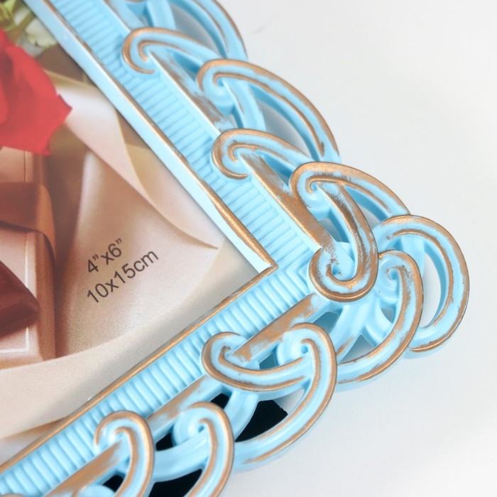 Фоторамка пластик 10х15 см "Вязаная" голубая с золотом 20,5х15,5 см