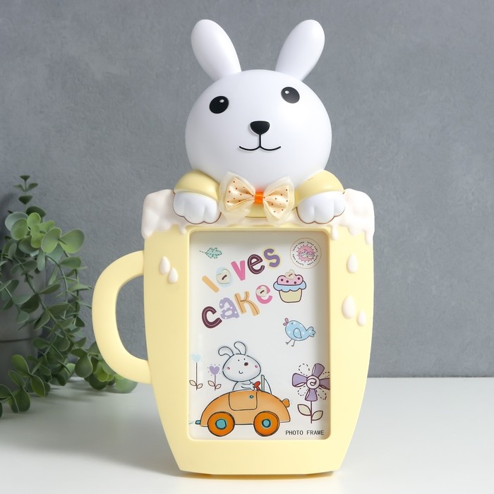 Фоторамка пластик 10х15 см "Зайка в чашке" жёлто-белая 6х20х33 см